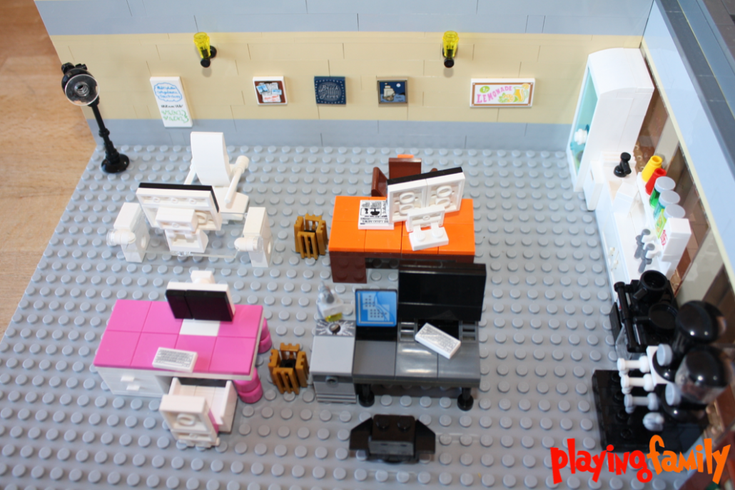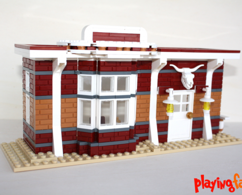 Das sind einige unserer MOCs (my own creations), die wir in den letzen Jahren gebaut haben. Zum Teil haben wir auch original Lego®-Sets verändert, wie zum Beispiel das Big Cinema.